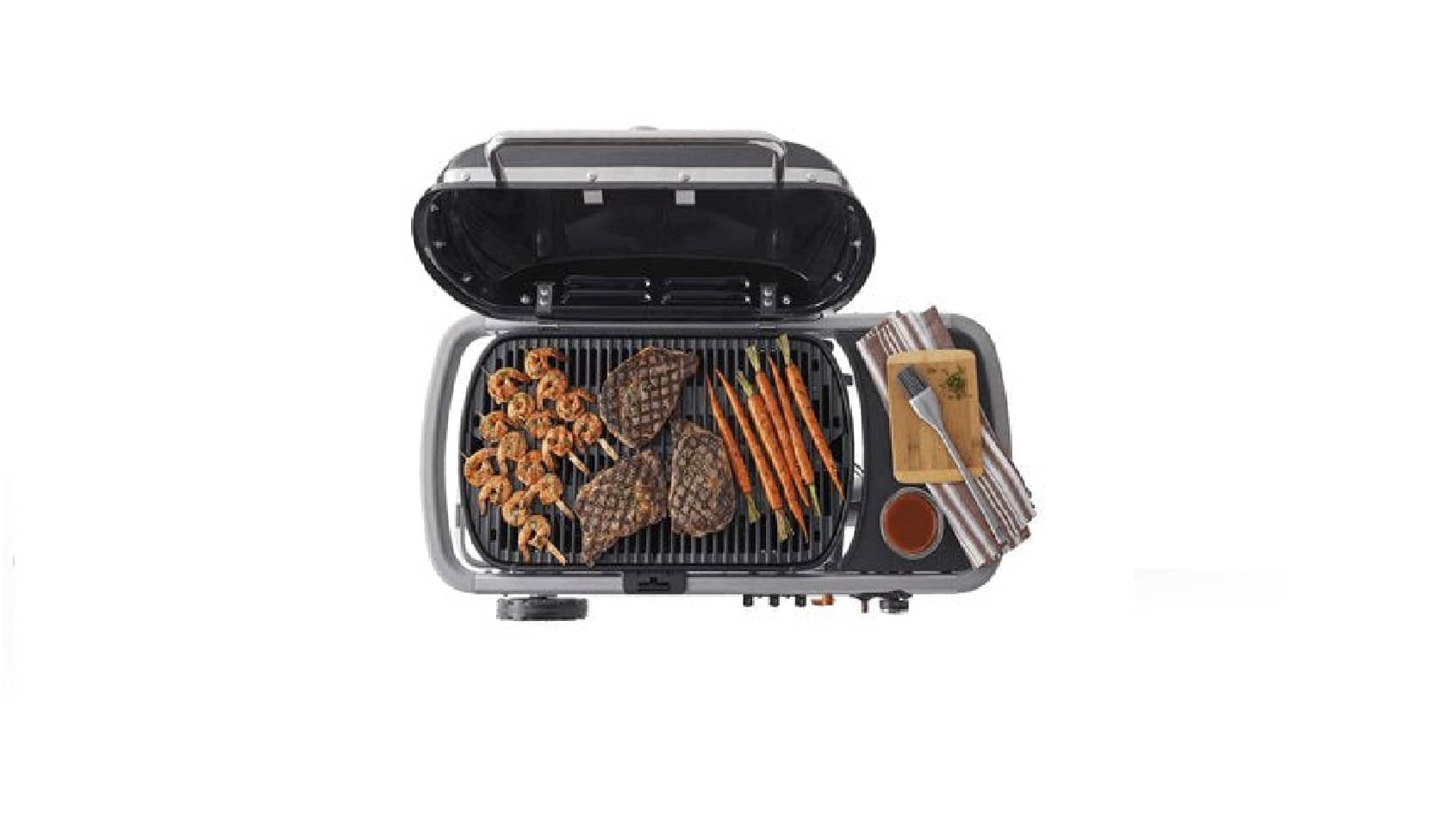 • Grill is attached to the cart so that you’re up and grilling in no time